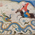 Ilustracja przedstawiająca króla Sasanidów Bahrama V walczącego z Azhdahą w Szahname; źródło: https://en.wikipedia.org/wiki/Azhdaha